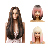Atacado Cosplay Ombre Cor Curto Bob Peruca Destaque Natural Marrom Sintético Longo Reta Perucas para As Mulheres