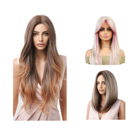 Shinein Layered Destaque Rosa Loira Senhoras Perucas De Cabelo Parte Média Resistente Ao Calor Gradiente Marrom Longo Ondulado Encaracolado Perucas Sintéticas